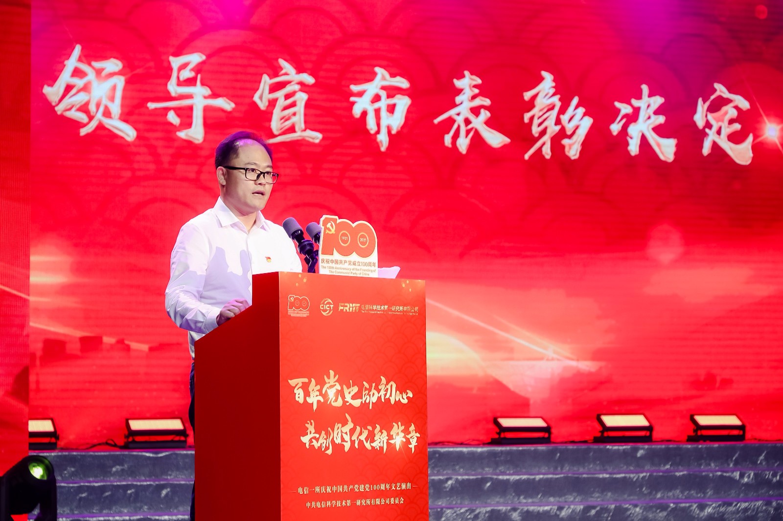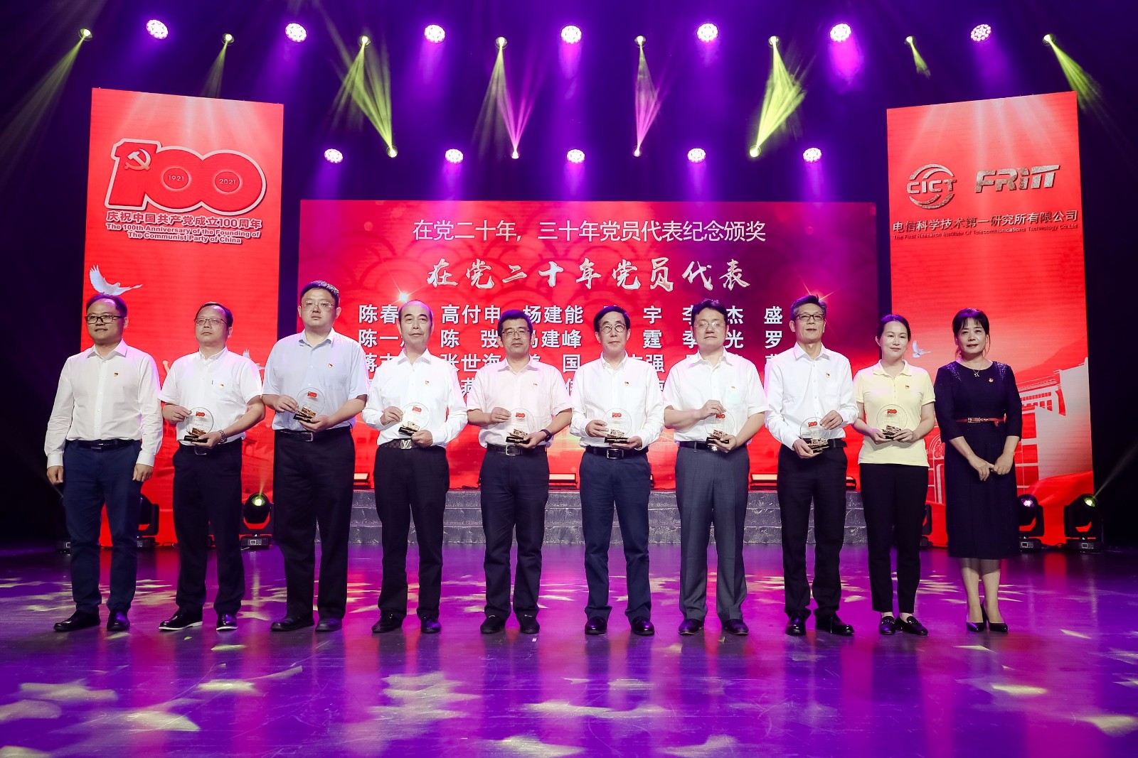 6月29日下午,电信一所隆重举行“百年党史励初心,共创时代新华章”庆祝中国共产党成立100周年大会,全所近三百名党员及职工参会。活动伊始,电信一所党委书记、副总经理蒋红梅代表做大会致辞,电信一所总经理、党委副书记邱详平宣读《关于表彰2020年度优秀共产党员、优秀党务工作者、先进党组织的决定》。蒋红梅书记、邱祥平总经理为荣获年度“两优一先”的代表颁奖荣誉证书,并为在党三十年、二十年党员代表颁发纪念奖杯。随后进行了文艺演出。